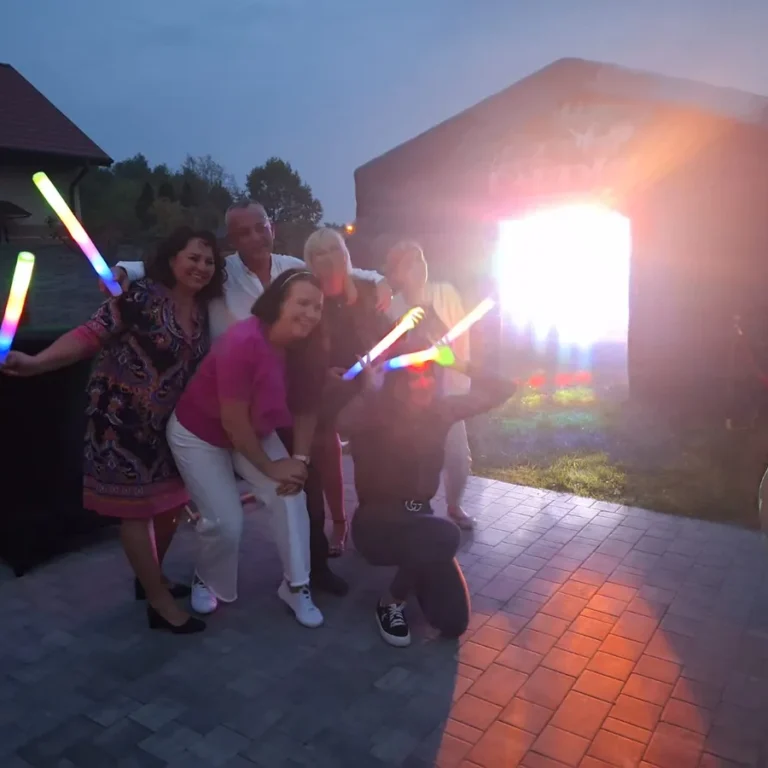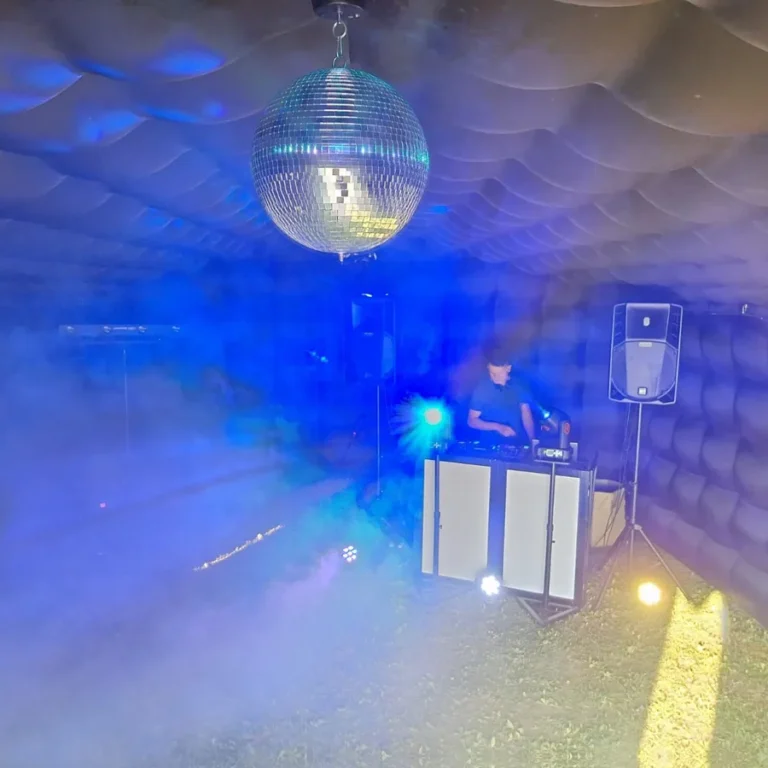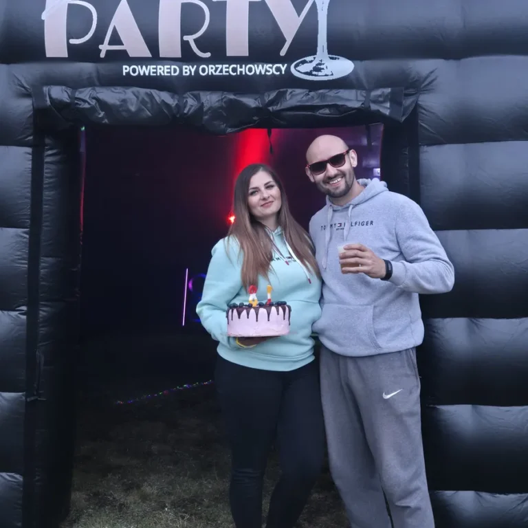 Posiadamy dwa namioty imprezowe. Pierwszy z nich wykonany z całkowicie wodoszczelnego materiału (tkanina plandeka PCV) o wymiarach 7mx5m, który pomieści do 45 tańczący osób . Drugi wykonany z materiału Oxford o wymiarach 8mx6m, w który śmiało może bawić się nawet ponad 50 tańczących osób !